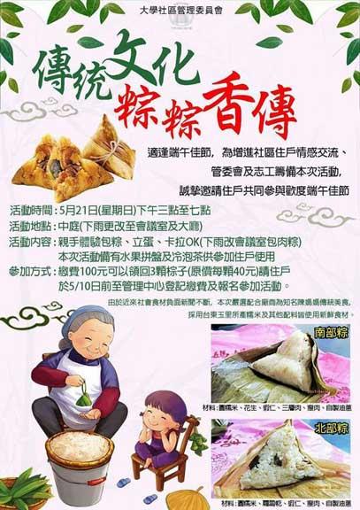 陳媽媽與社區合作,提供住戶DIY包粽子與販賣,依您需求數量準備提供,南部粽或北部粽,相關的食材與材料,歡迎各社區管委會來洽詢。